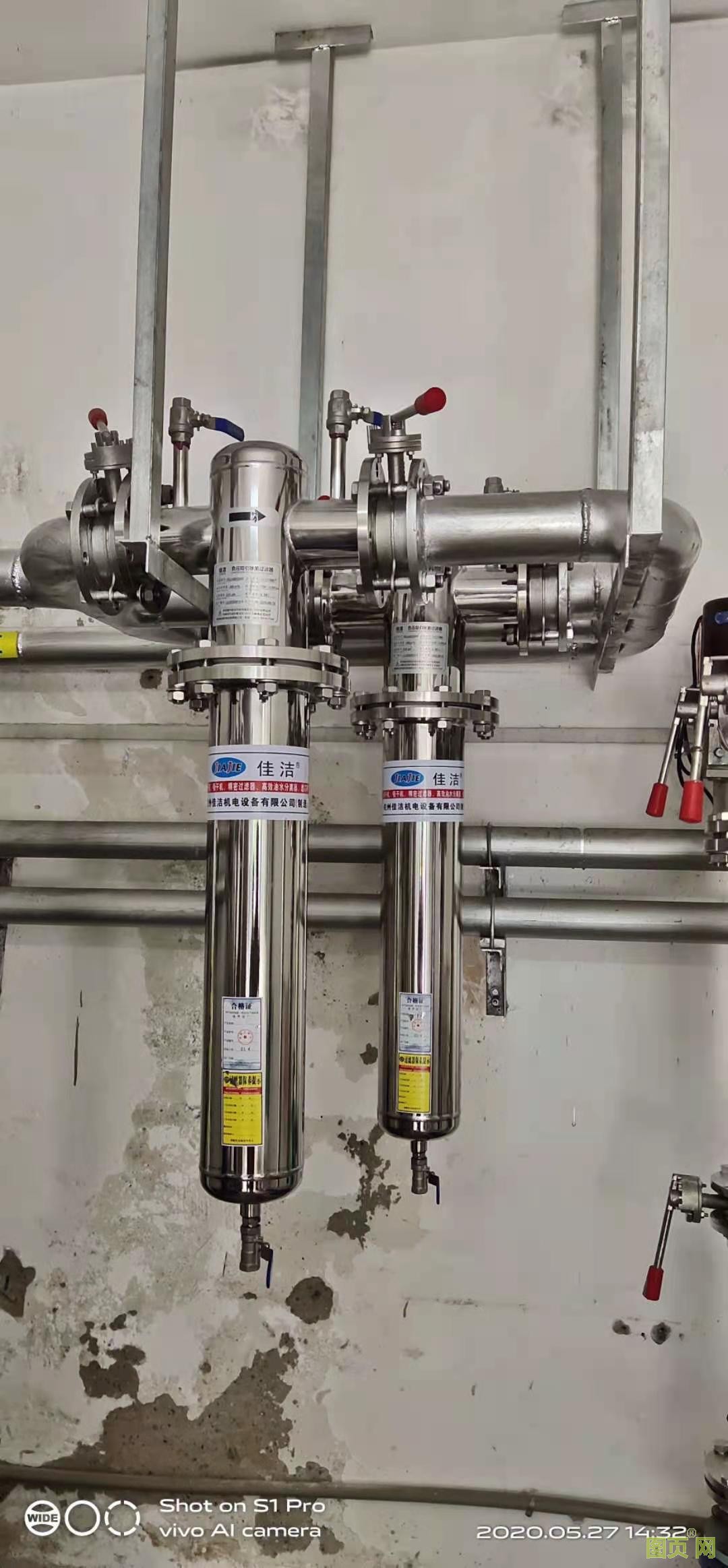 入除菌过滤器的压缩空气先经过精密过滤器及干燥机。除油、除水、除尘,油雾浓度应≤0.01PPM,否